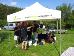 Op een heerlijke, zonovergoten, zaterdag was er een spannende Drakenbootrace in de kanovijver op het Ommoordse veld.